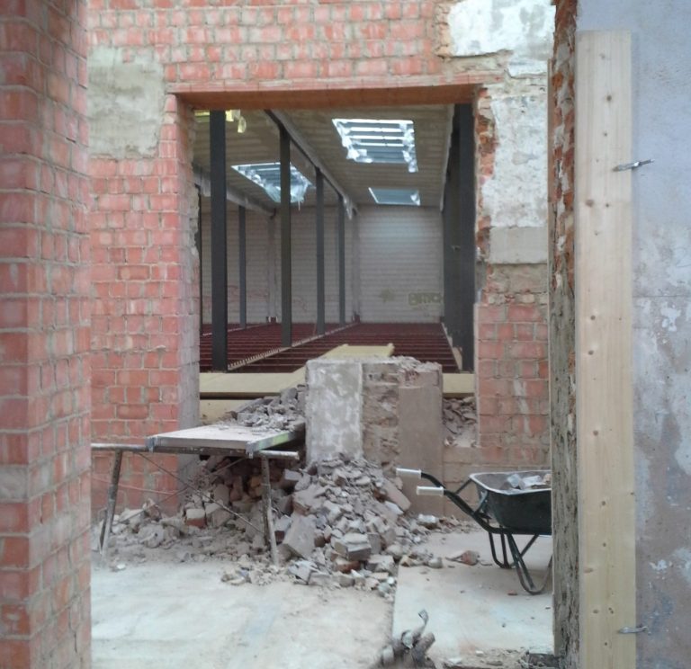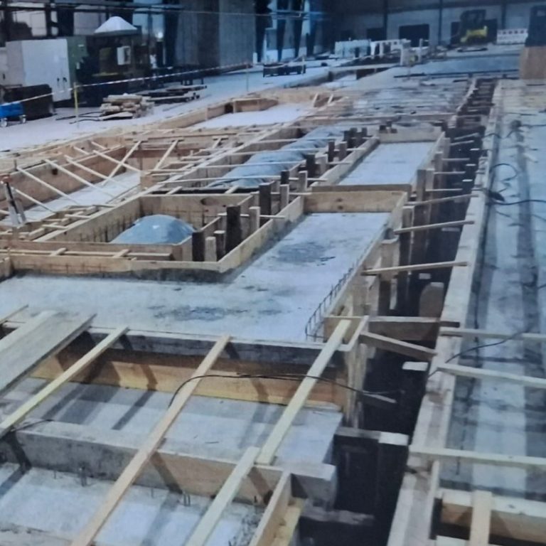 Es wurden Schalungen aus Holz gesetzt – zur Herstellung neuer Fundament- und Bodenbereiche.