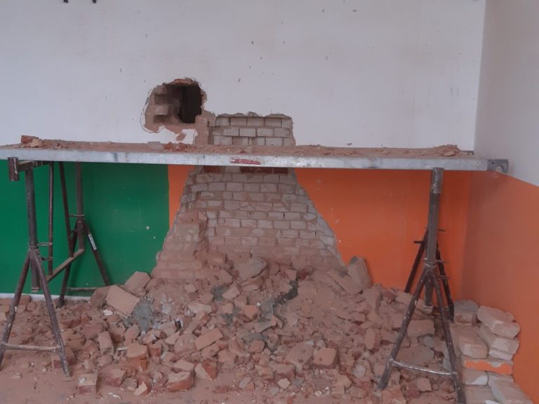 Es wurden Schalungen aus Holz gesetzt – zur Herstellung neuer Fundament- und Bodenbereiche.